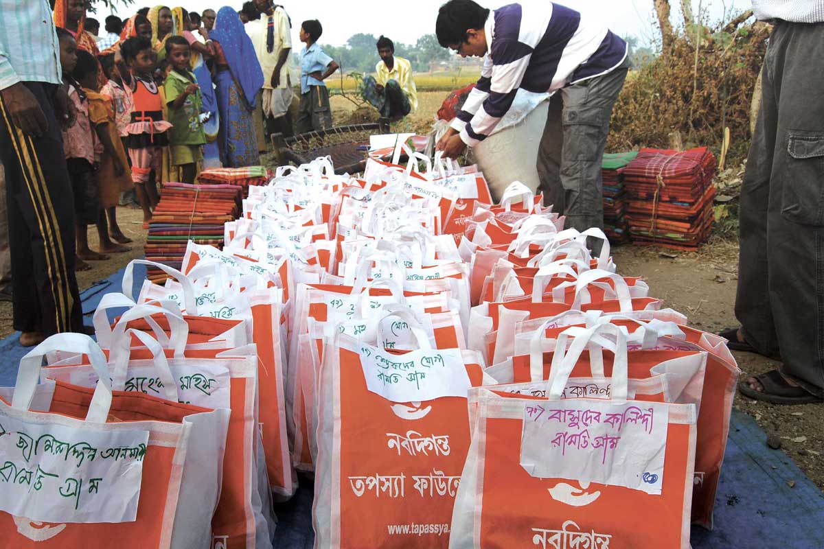 Nabadiganta Tapassya Foundation conduct an annual cloth distribution drive during November-December timeframe. Tapassya is doing this program from its inception. In this program old but in good condition cloths are collected from different corporate house like TCS, Ericsson from their employees and then distributed with help of different NGOs working at the edge of rural areas. Tapassya also raise funds and purchase new cloths like sarees, lungi and winter blankets to add on this.