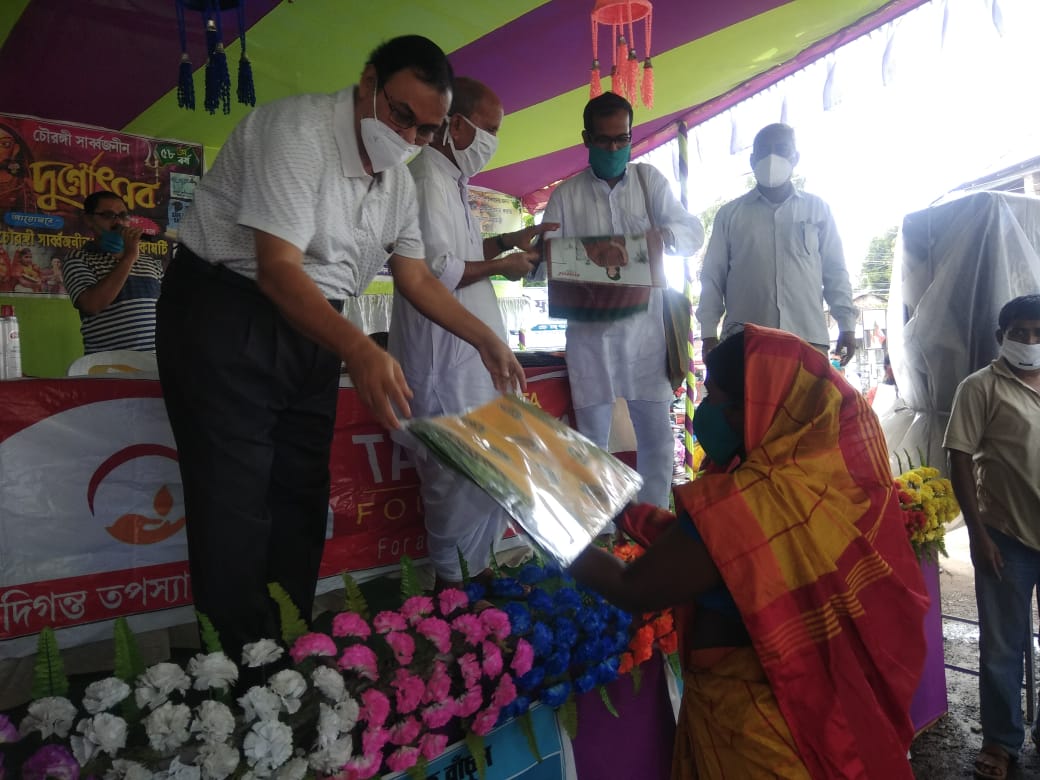 The sorting and distribution operation is supported by Belgharia Ramkrishna Mission and Karkai Ashram.
